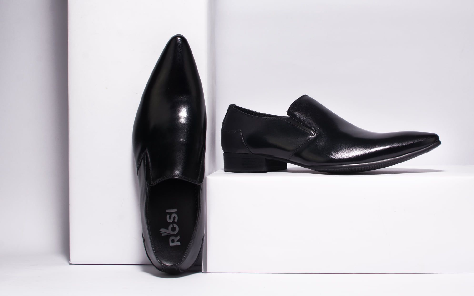 Giày tây nam Rosi GS32 có thiết kế mũi nhọn sang trọng, tinh tế. Mang lại vẻ lịch thiệp cho các quý ông. Phần thân & mũi giày thiết kế trơn, phần gót giày họa tiết da rắn tạo điểm nhấn đem đến một phong cách độc đáo cho chủ nhân. Chất liệu da bò cao cấp và đệm lót da êm ái và mềm mại cho người dùng những trải nghiệm thoải mái nhất. GS32 không kén trang phục dễ dàng phối hợp với nhiều phong cách khác nhau.